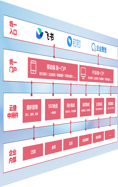对协作平台提供支持服务,,,支持企业应用与协作平台对接,,包含组织同步、、、消息集成、、待办集成等。。。支持目前主流的协作平台:钉钉、、、、企微和飞书。。。